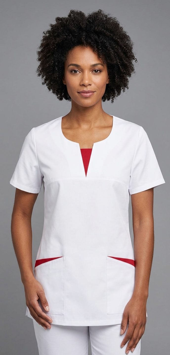 Kasack, Damenkasack, IRIS, weiss mit roten Einsätzen